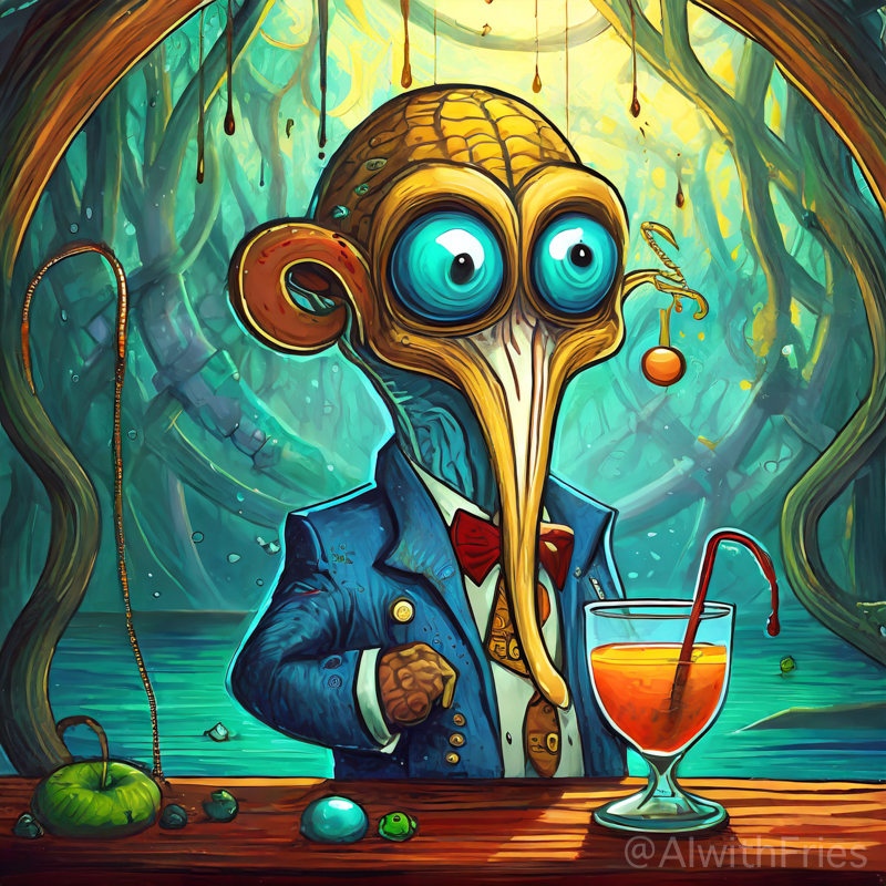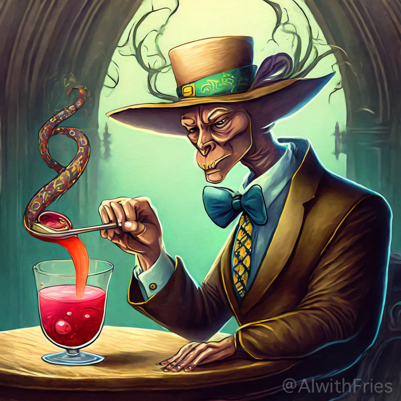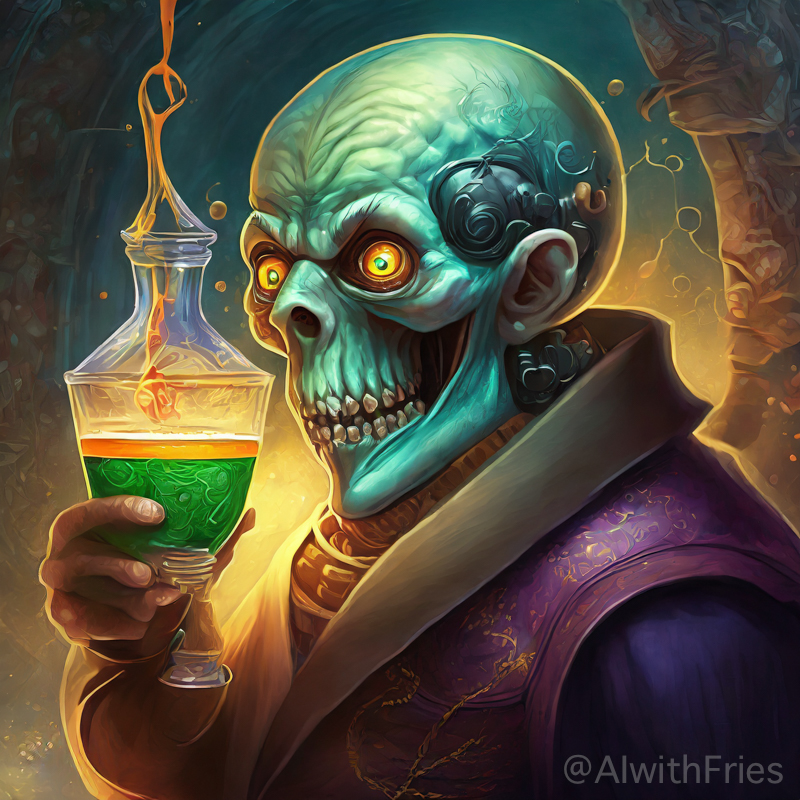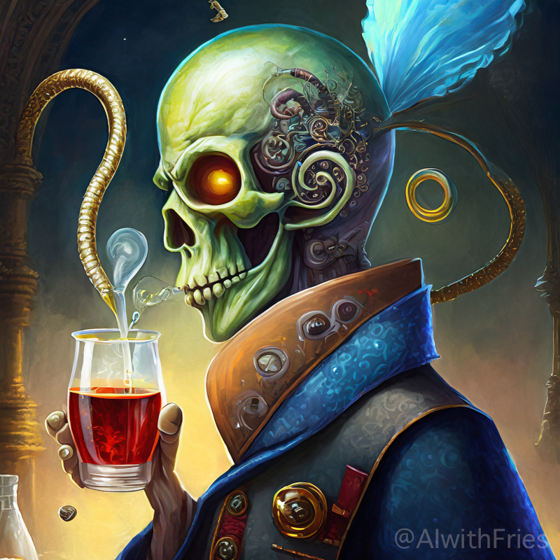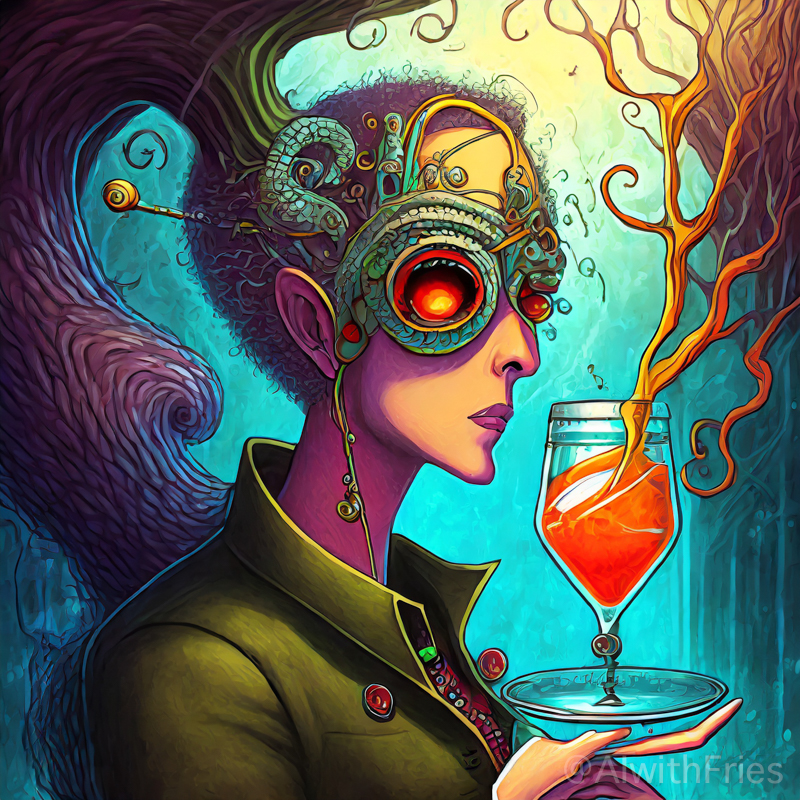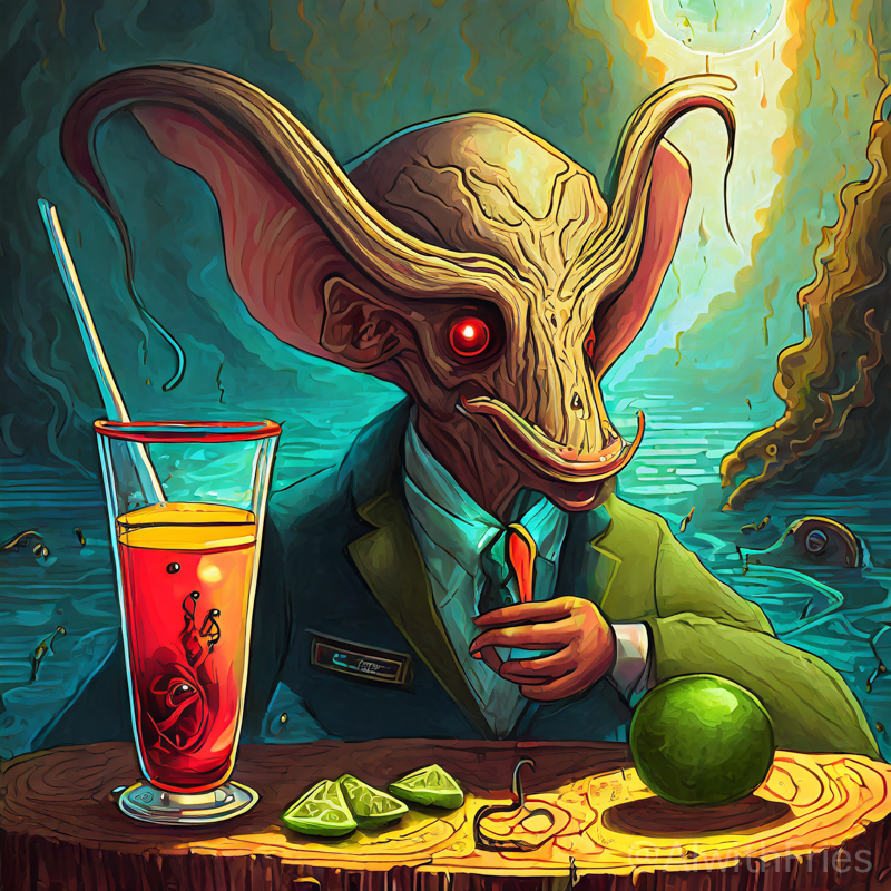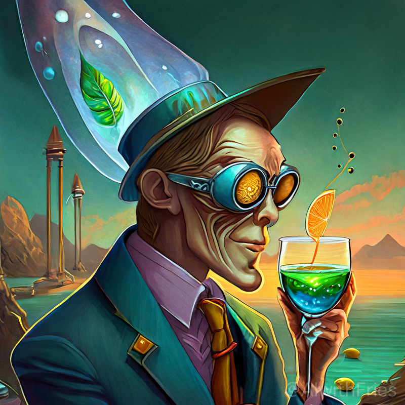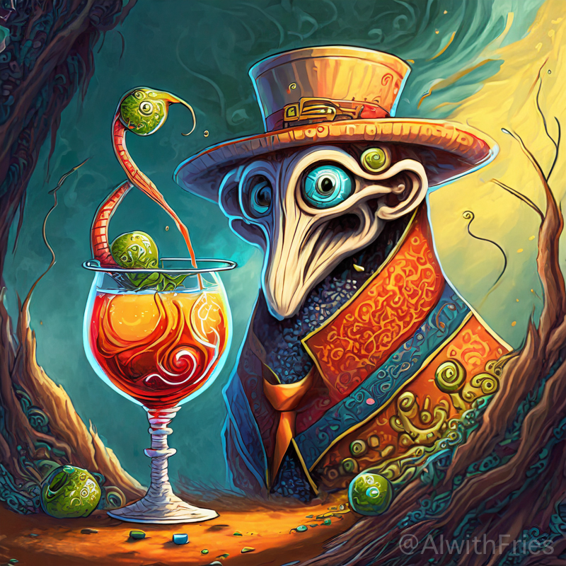 The bartender poured a concoction that shimmered with an otherworldly hue into a glass chiseled from solid despair. I took the drink and turned to survey the patrons—each one a story of downfall and defeat. There was the gambler, eternally raising his glass in a toast to fortunes never won; the seductress, her beauty marred by the scars of treachery; and the poet, scribbling verses that would never see the light of day.