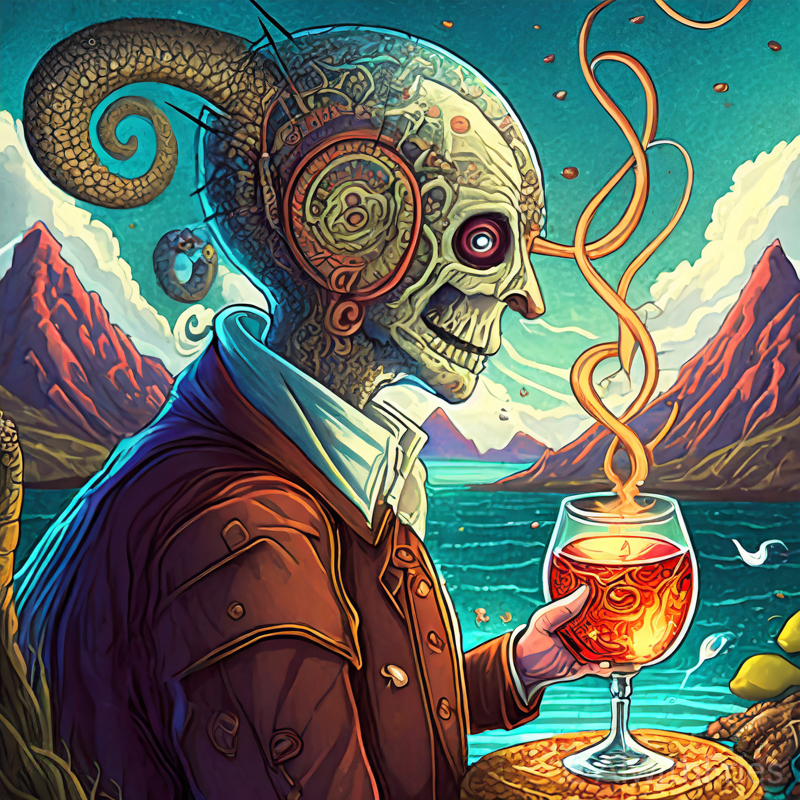 I found a seat beside a man whose eyes were as hollow as the void itself. He raised his glass in solemn greeting. “To oblivion,” he whispered, and I echoed his toast.